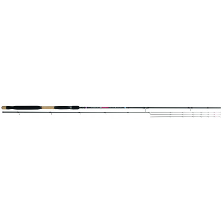 Ces cannes se caractérisent immédiatement au premier coup d'œil par les blanks très fins, cette particularité vous permettra d'avoir une grande précision au lancer, de la réactivité et être prêt pour le ferrage. La gamme permet l'utilisation de n'importe quel type de cage feeder mais aussi pour le method feeder.
