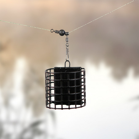Émerillon coulissant avec agrafe de haute qualité avec clip de sécurité. Il permet aux cages feeder de circuler sans entrave sur la ligne, qu’elle soit en nylon ou en tresse.