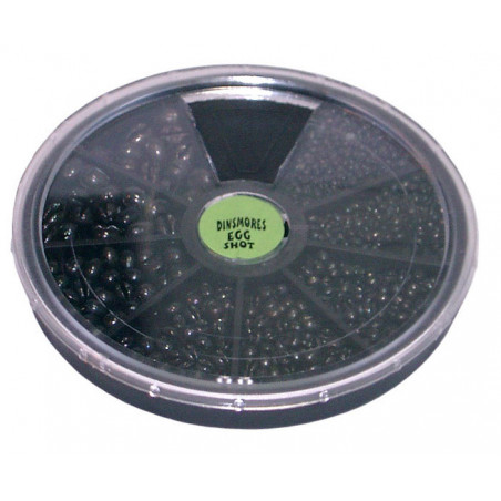 La marque Dinsmores est connue et reconnue partout en Europe. Plomb mou typique Anglais et fabriqué par eux-mêmes. 8 compartiments de plombs noirs EGG SHOT - LG, LSG, SSG, AAA, BB, 1, 4, 6