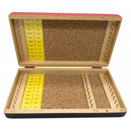 Boite à hameçons luxe de fabrication artisanale et manuelle. C’est vraiment un très beau produit qui devrait séduire les amateurs de pêche au coup pour les gardons, les plaquettes et les brèmes.
