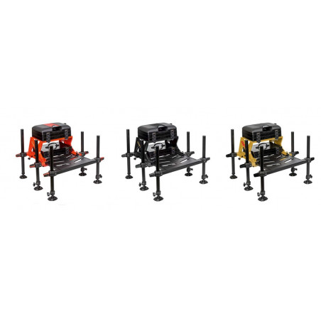 Ces sièges bénéficient de solutions techniques optimales pour le confort du pêcheur. Ils sont dotés de supports de pieds extrêmement robustes et très résistants, d'une plateforme repose pieds solide, fiable et ajourée, d'un coussin confortable avec support pour talon de canne et de pieds stables de 36 mm de diamètre.